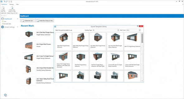 There are hundreds of residential construction project templates, from garages to houses, lean-to single storey extensions to Apex roof double storey extensions. Pre-loaded templates are one of a number of options for estimating.